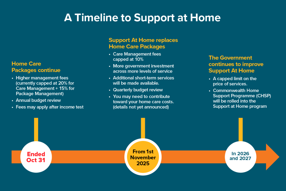 The Australian Government is introducing the new Support At Home program to replace Home Care Packages (HCP) from 1st November 2025.