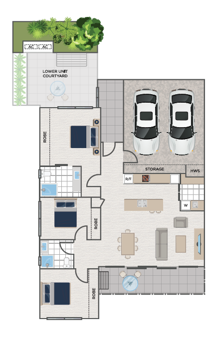 The Manor is an upper level three bedroom, two bathroom home with double garage.