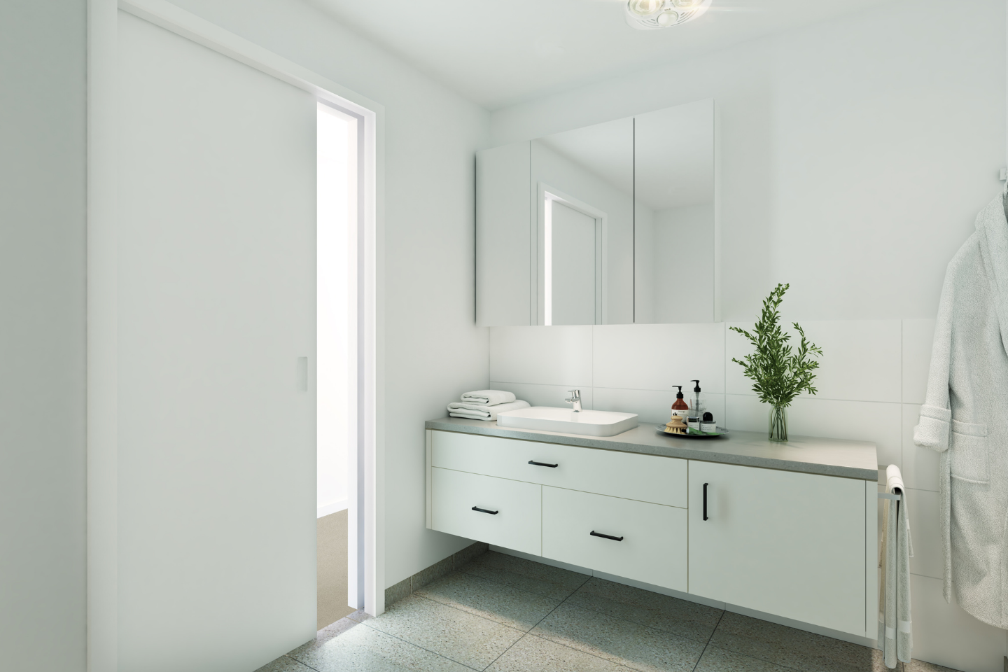 The Manor is an upper level three bedroom, two bathroom home with double garage, which has direct access to the home. The generous open plan living spaces are perfect for entertaining and the balcony overlooking Mooroolbark's native landscape.